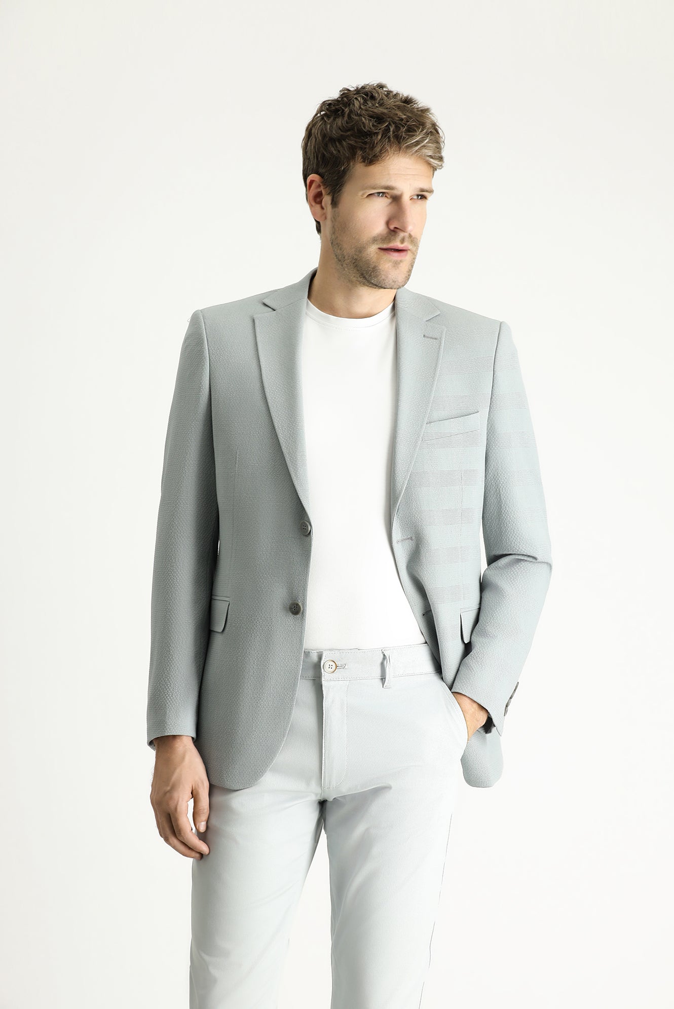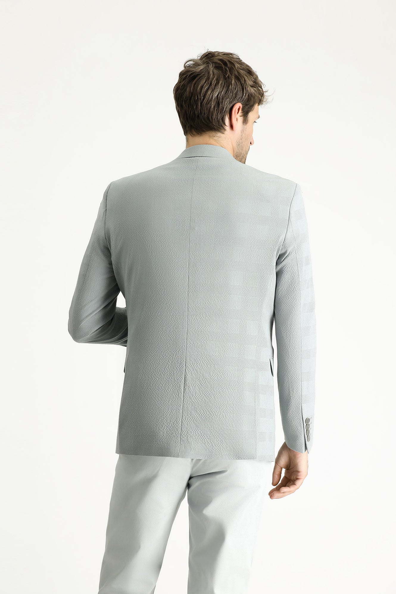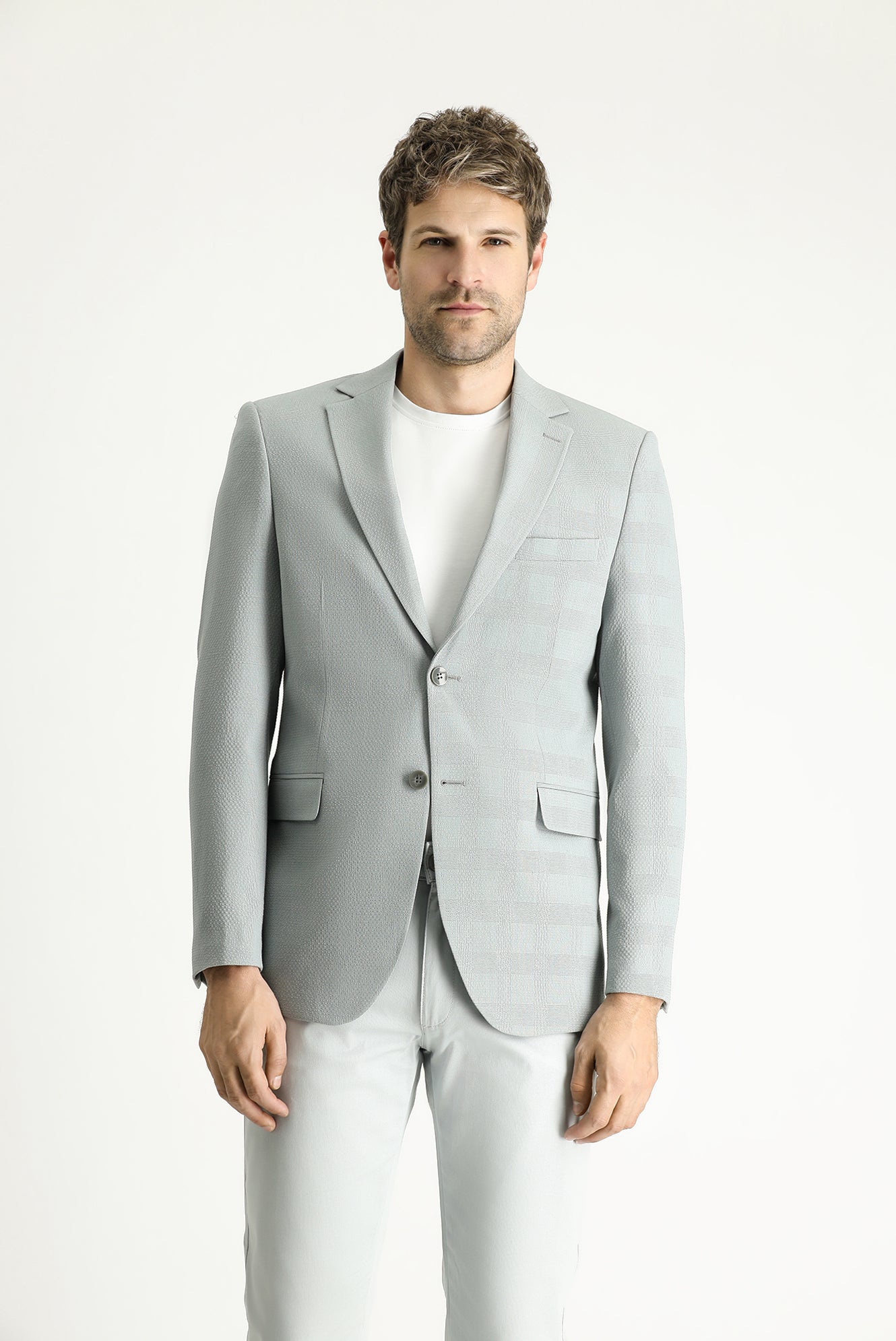 Uçuk Mavi Relaxed Fit Rahat Kesim Klasik Ekose Gofre Ceket