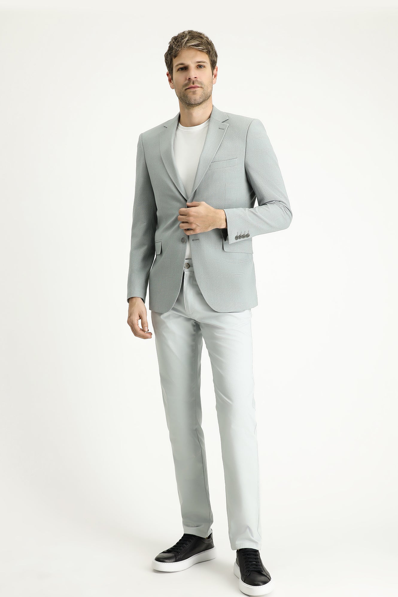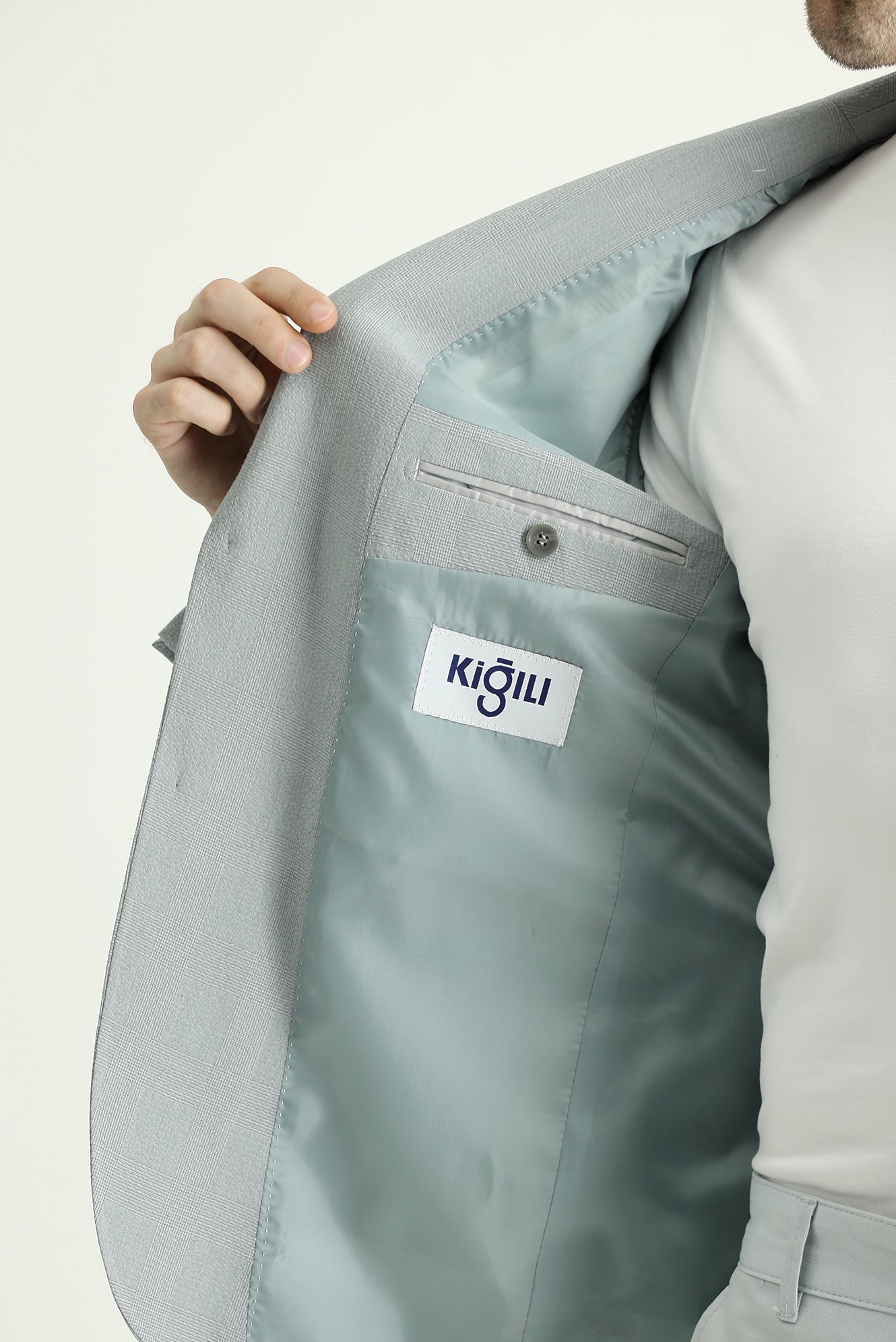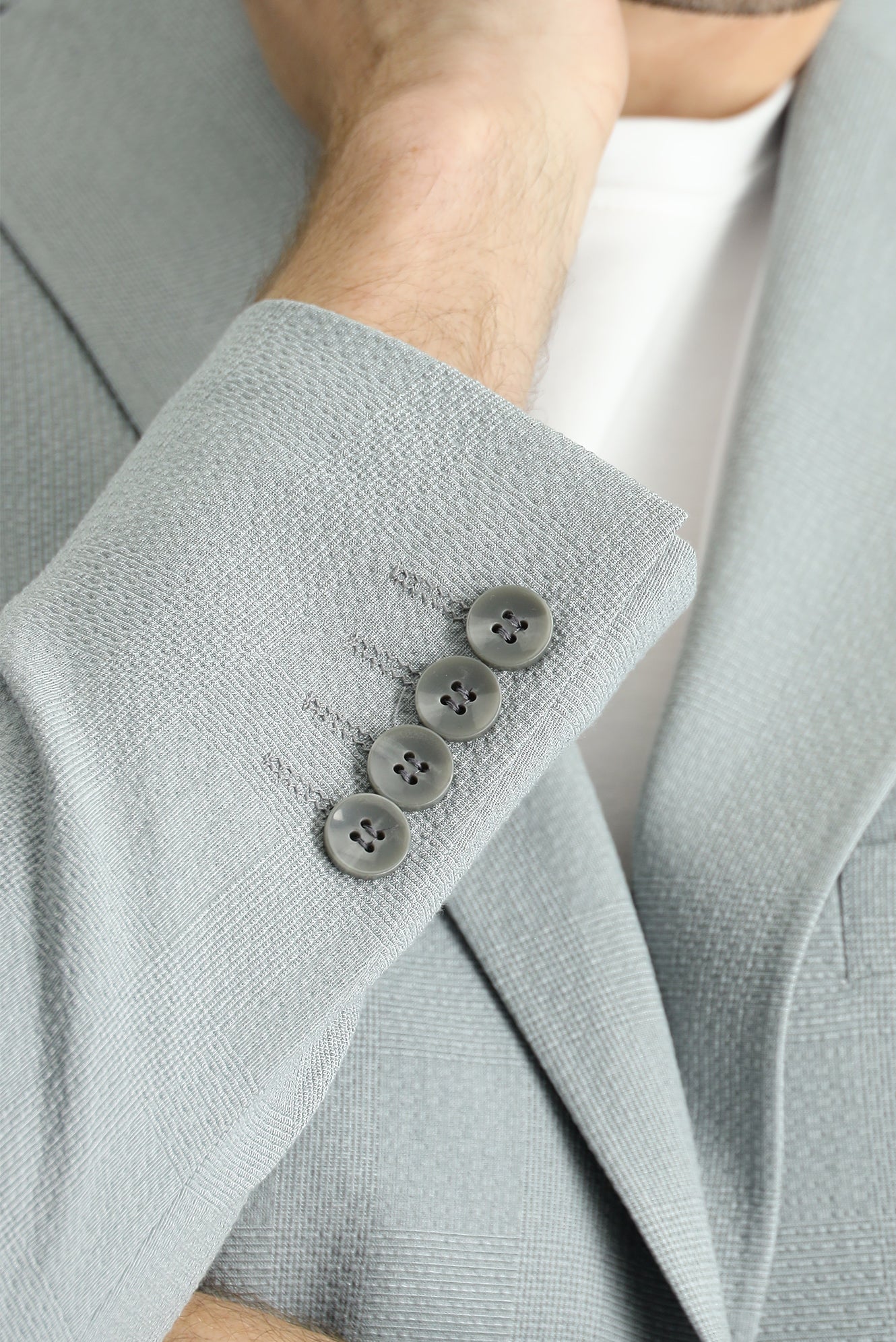 Uçuk Mavi Relaxed Fit Rahat Kesim Klasik Ekose Gofre Ceket