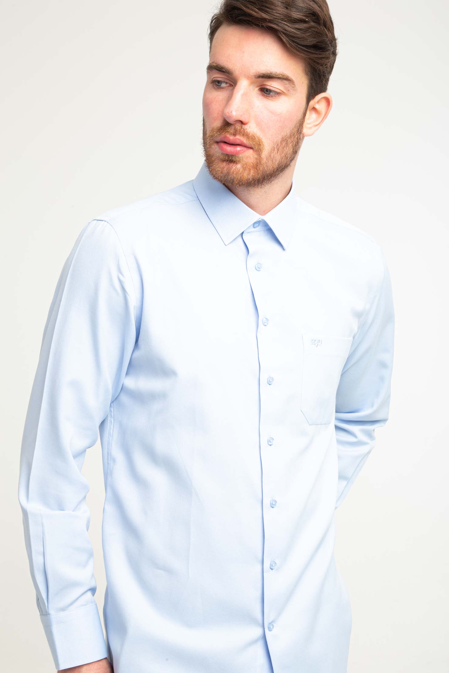 Uçuk Mavi Uzun Kol Desenli Klasik Gömlek