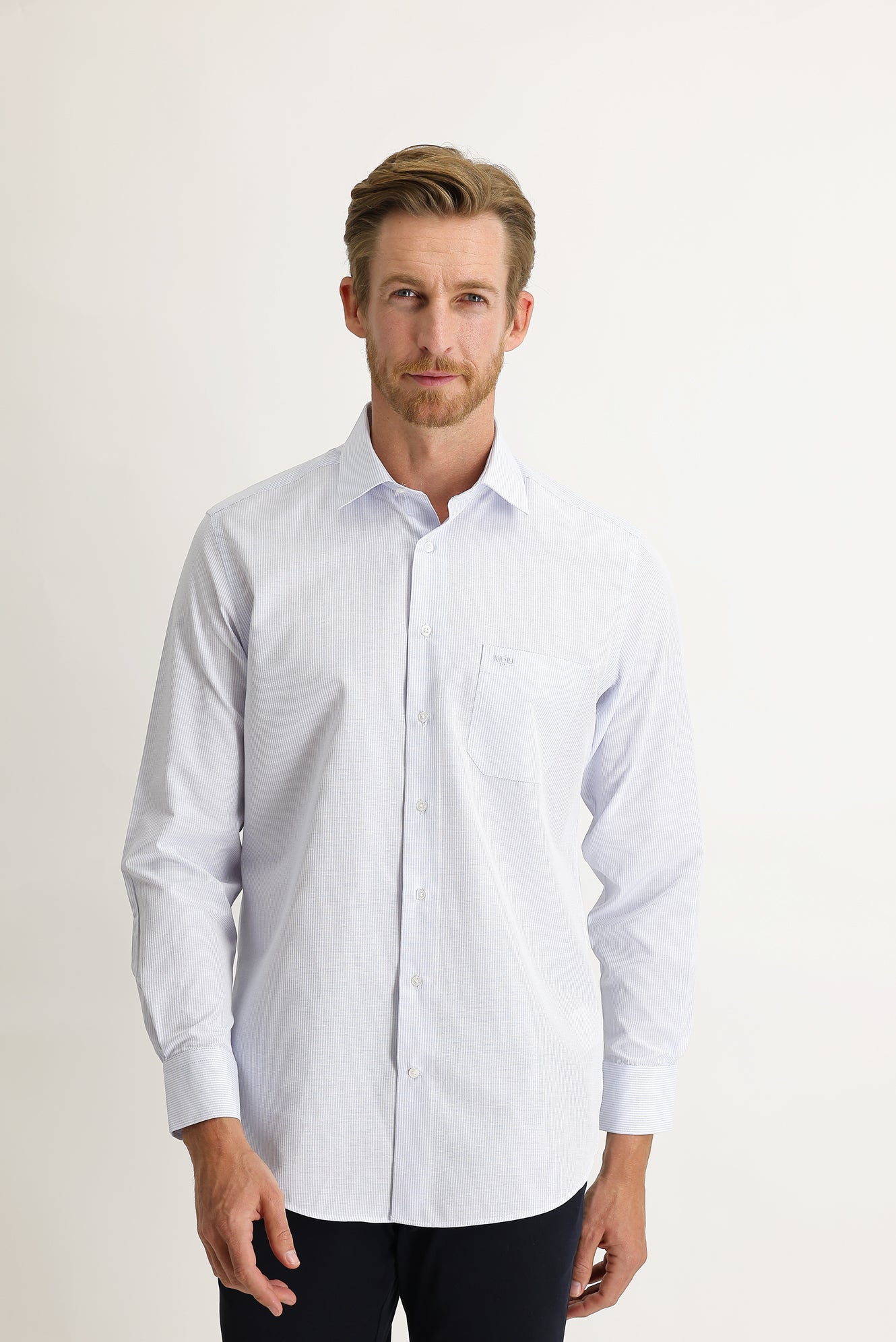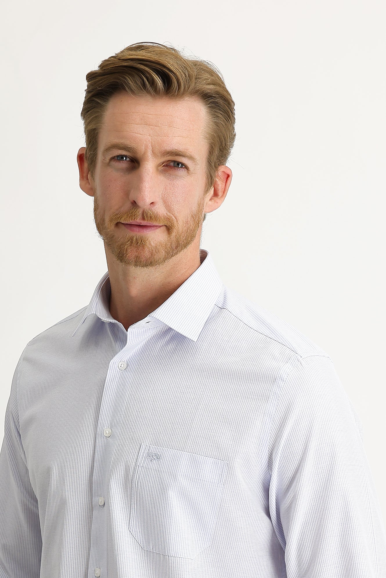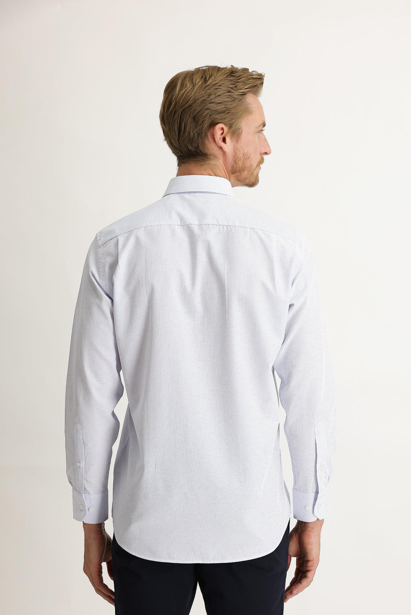 Uçuk Mavi Uzun Kol Klasik Çizgili Gömlek