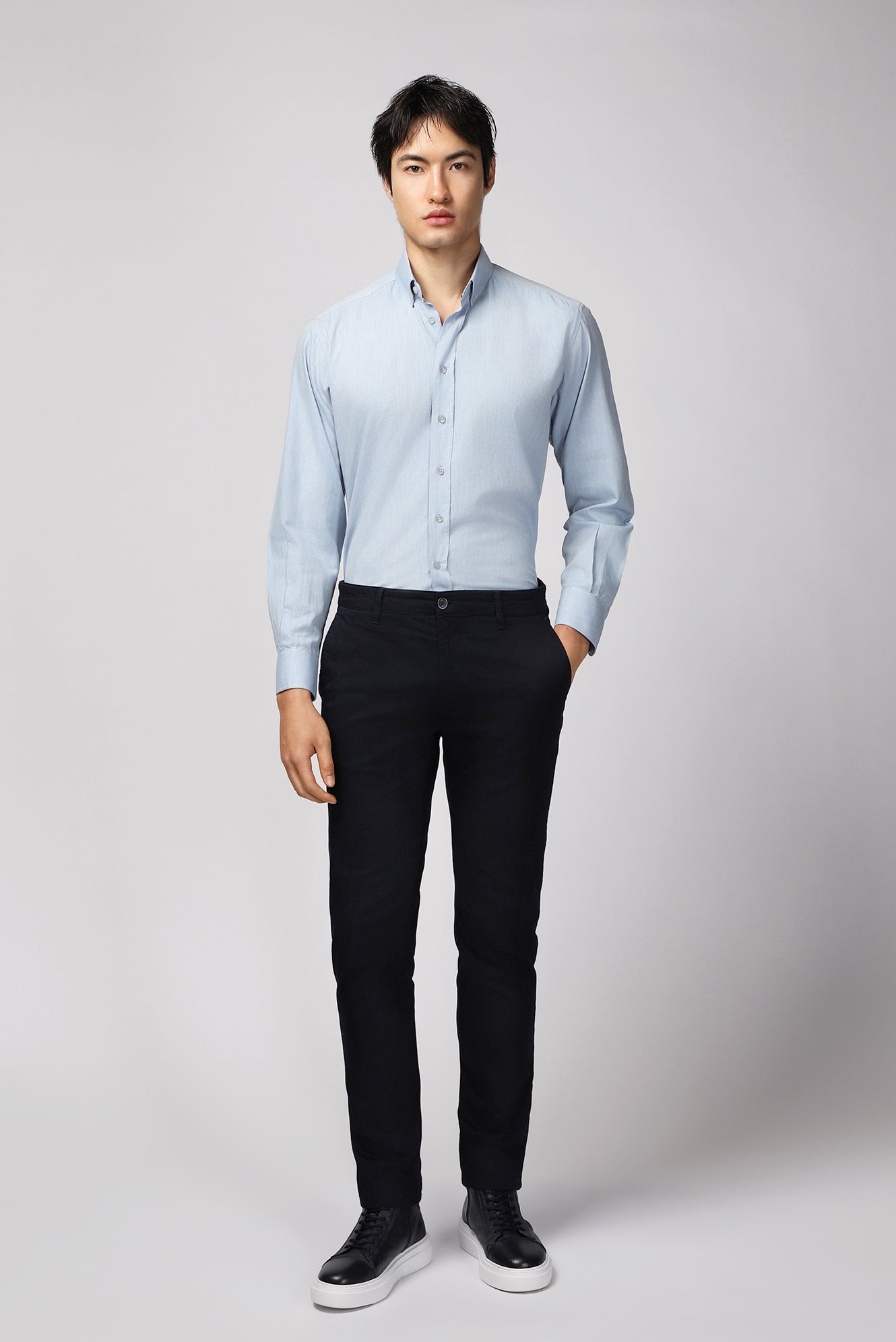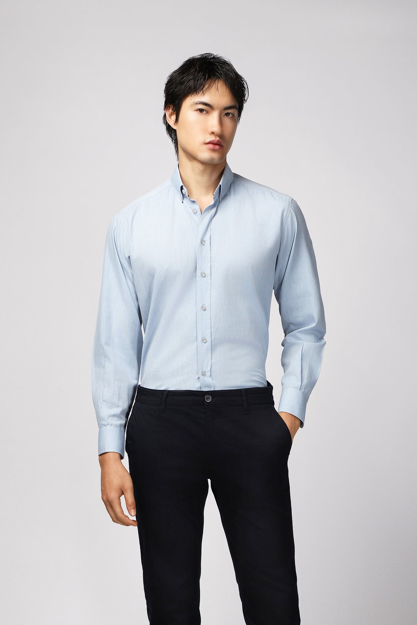 Uçuk Mavi Uzun Kol Regular Fit Spor Pamuk Düğmeli Yaka Oxford Gömlek