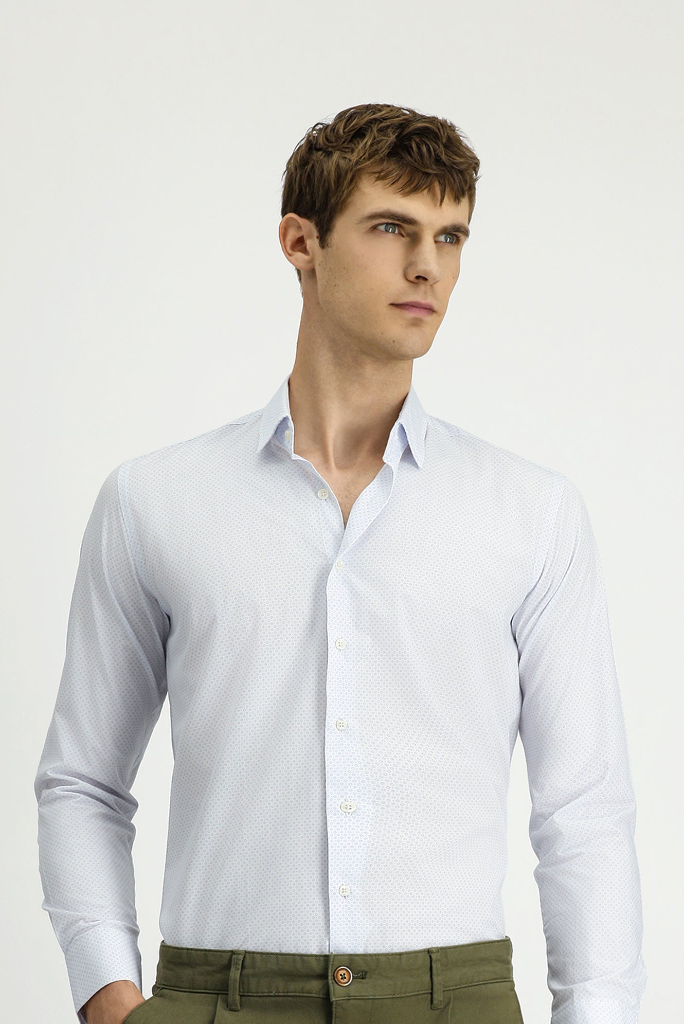 Uçuk Mavi Uzun Kol Slim Fit Dar Kesim Baskılı Pamuk Gömlek