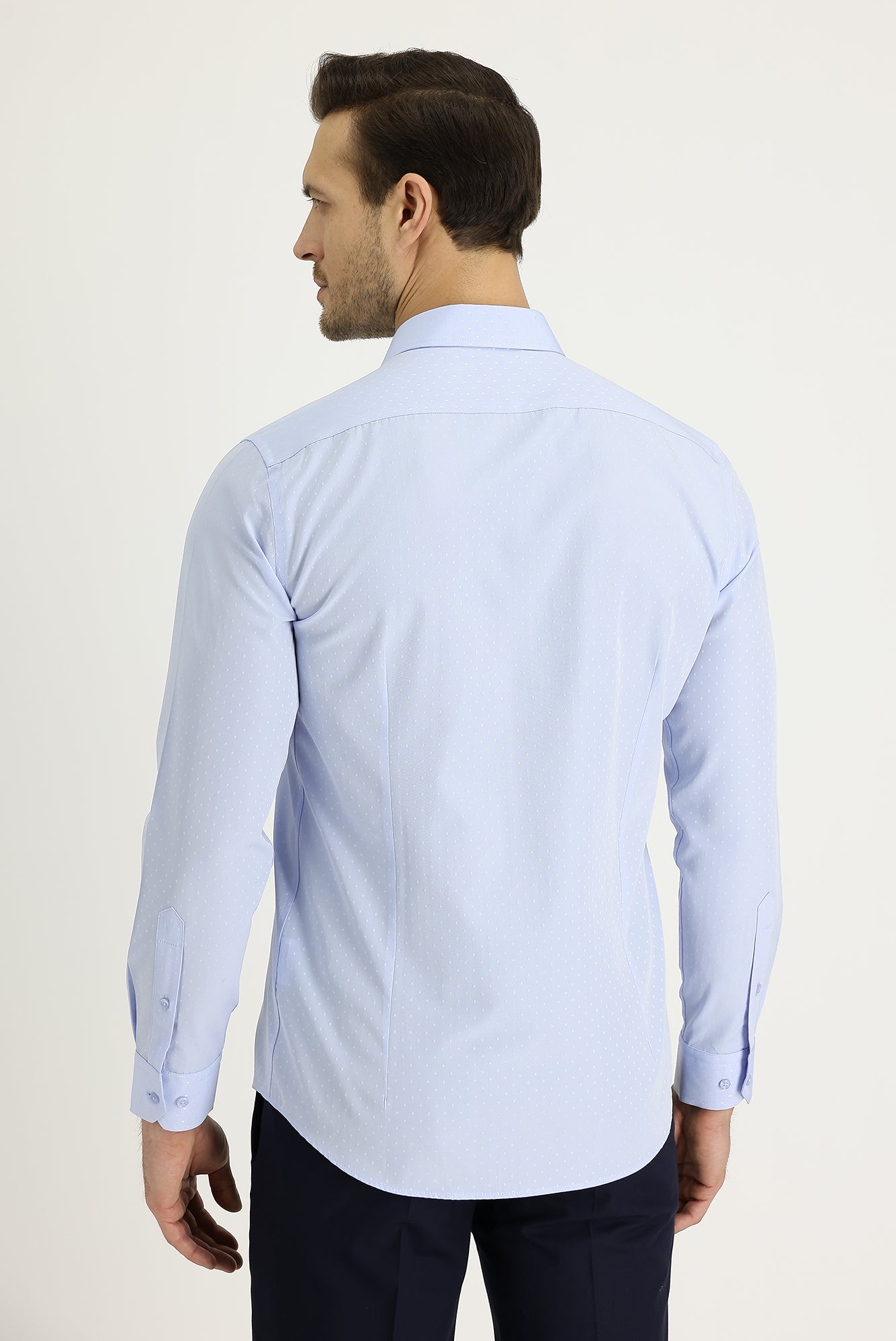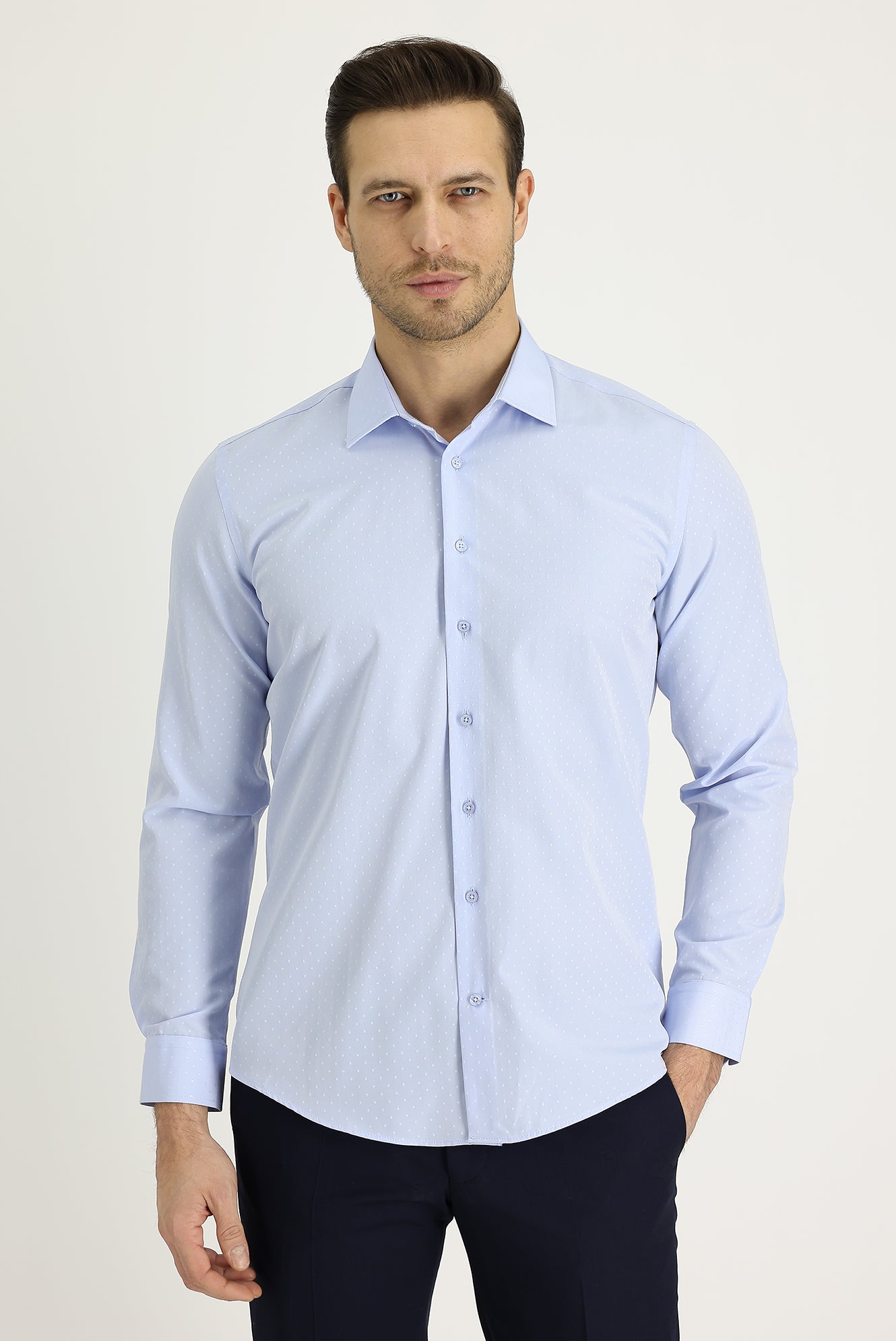 Uçuk Mavi Uzun Kol Slim Fit Dar Kesim Klasik Desenli Pamuklu Kolay Ütülenebilir Gömlek