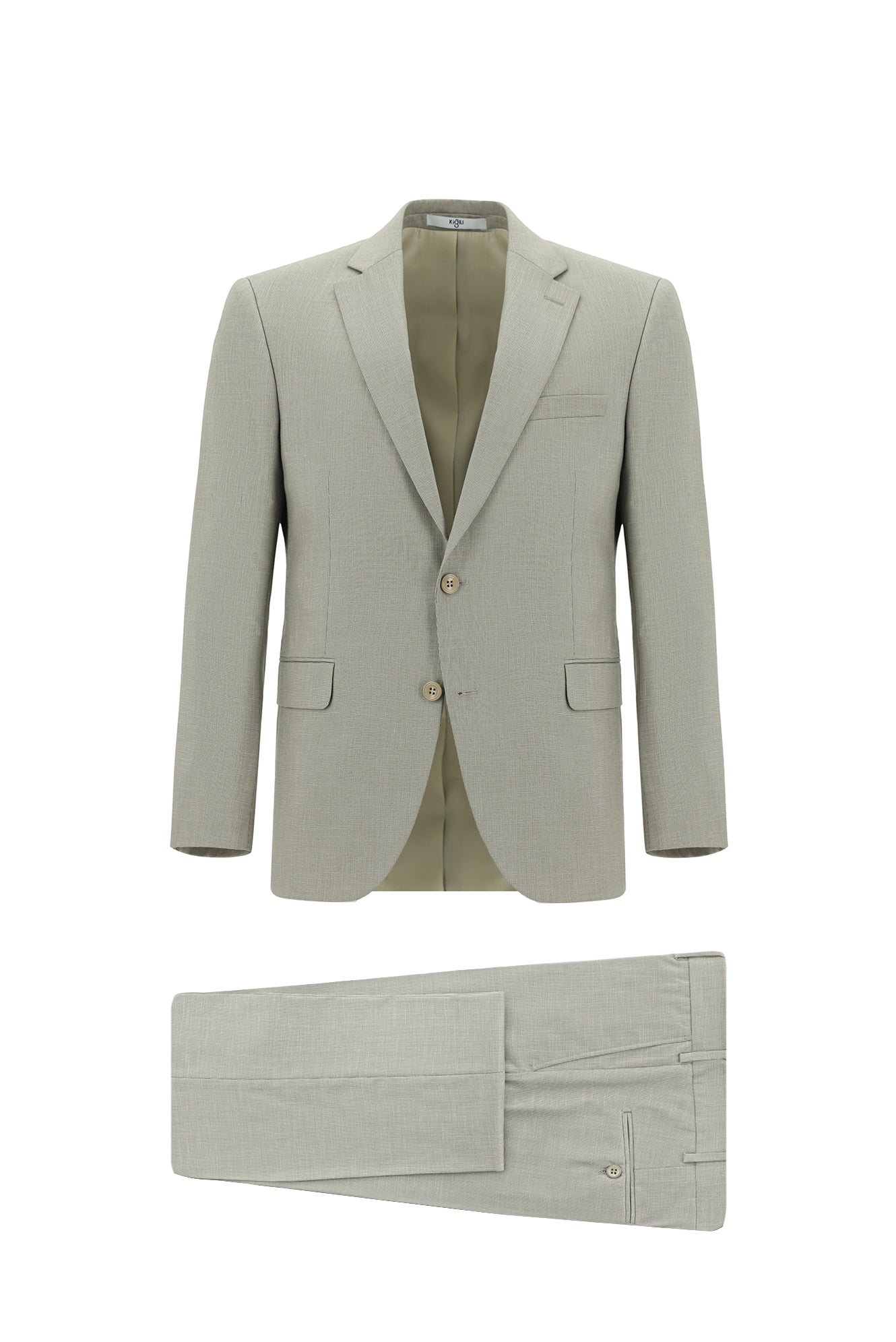 Yağ Yeşili-Olive Regular Fit Klasik Desenli Takım Elbise