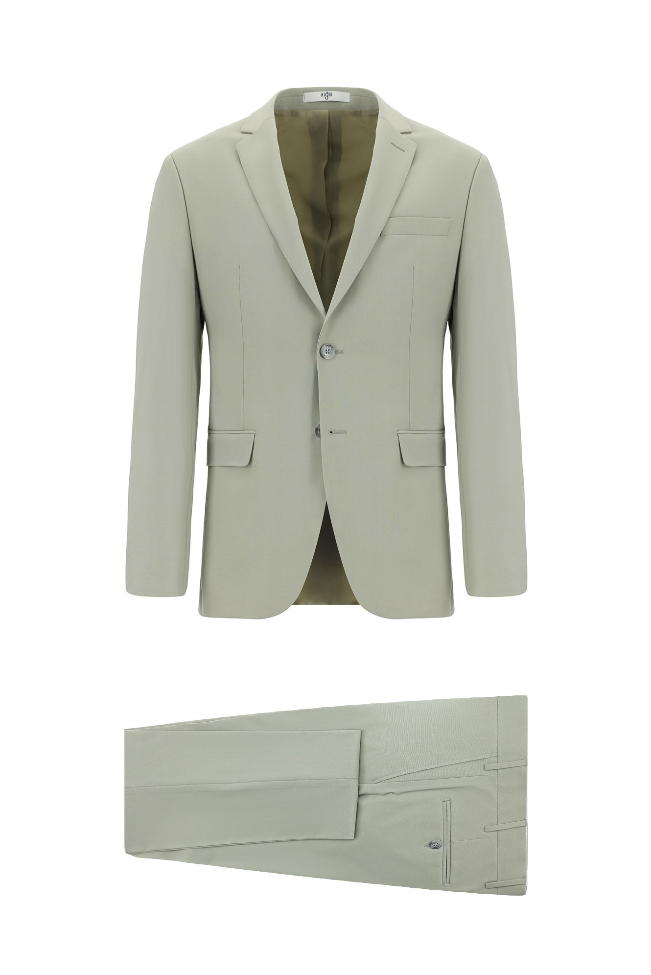 Yağ Yeşili-Olive Relaxed Fit Rahat Kesim Yünlü Klasik Takım Elbise