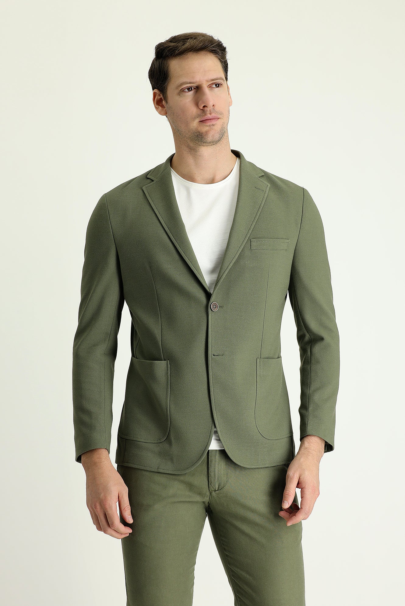 Yağ Yeşili-Olive Slim Fit Dar Kesim Spor Ceket